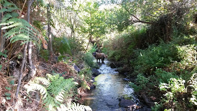 Ao chegarmos à Fonte da Saúde encontrámos o primeiro curso de água digno desse nome, a ribeira da Saúde. Encontrámos também a tia Isaltina, que lá tem uma horta alugada.